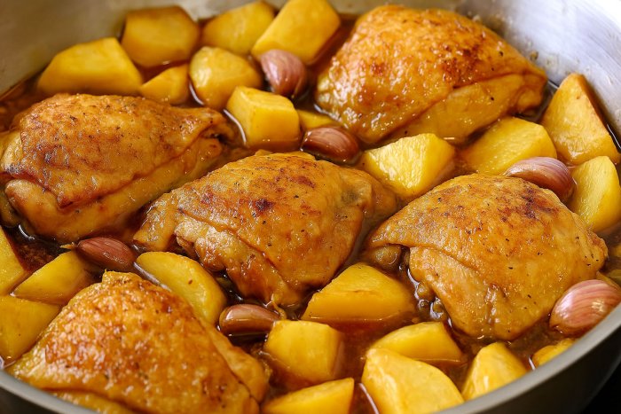 Servings /number of people: 2 peoplePreparation Time: 50 minutesCooking time: 45 minutesCategory: Birds Ingredients to prepare Easy Baked Chicken Thighs 4 chicken thighsA head of garlicHalf lemonSaltPepperA splash of ciderOlive oil How to prepare Easy Baked Chicken Thighs The easy baked chicken thighs are delicious. If you want a simple recipe that doesn’t take much … Read more